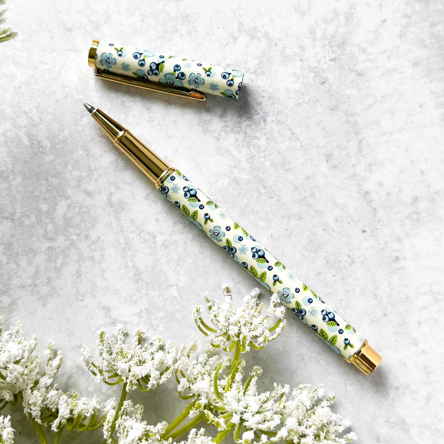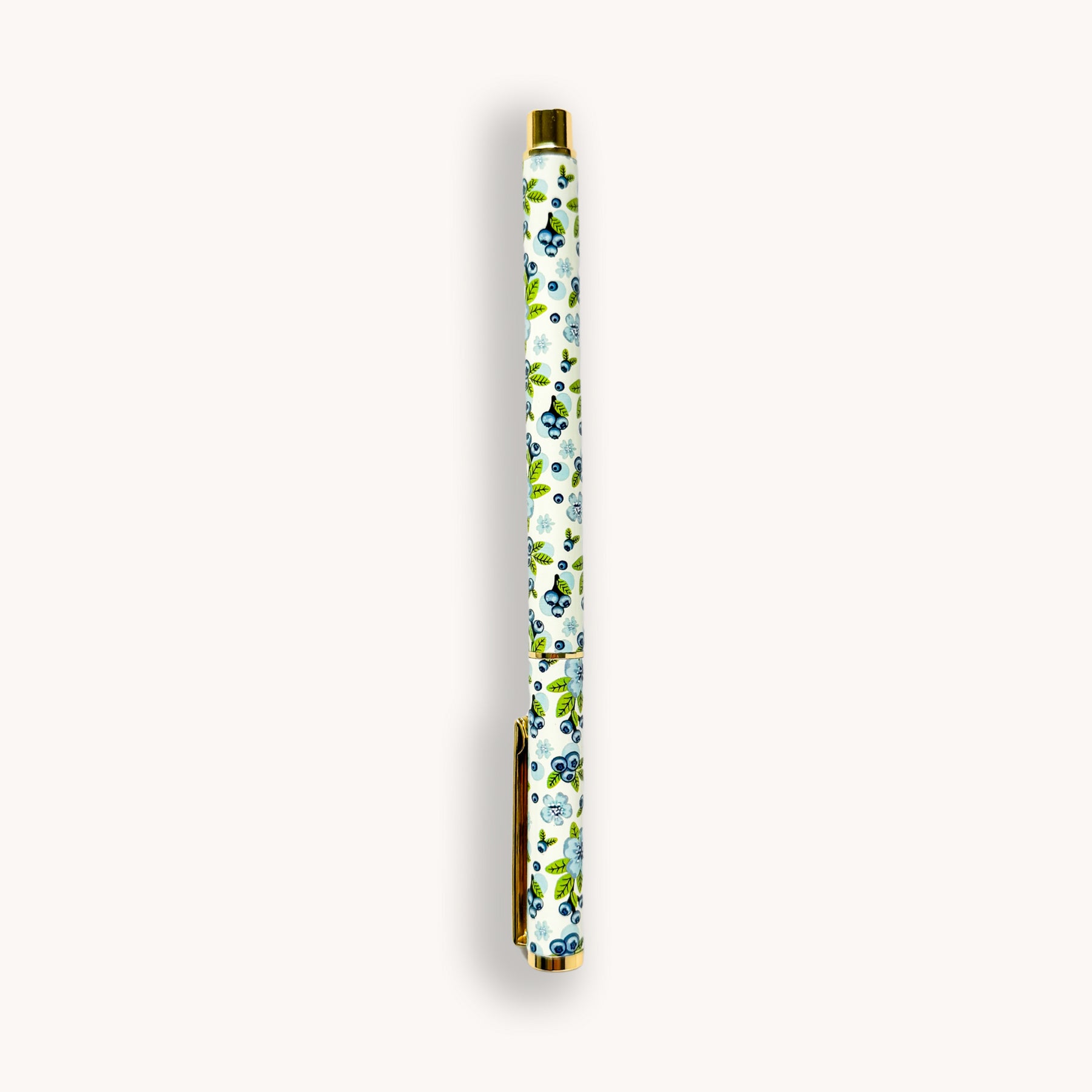 Our beautiful Garden Blueberries pen is the perfect companion for your Olga Nagorna Designs notebooks and notepads and a staple for your desk or purse. This pen features Olga Nagorna artwork that wraps entirely around the pen. Each pen is presented in a stylish 1-piece box with a clear view window.