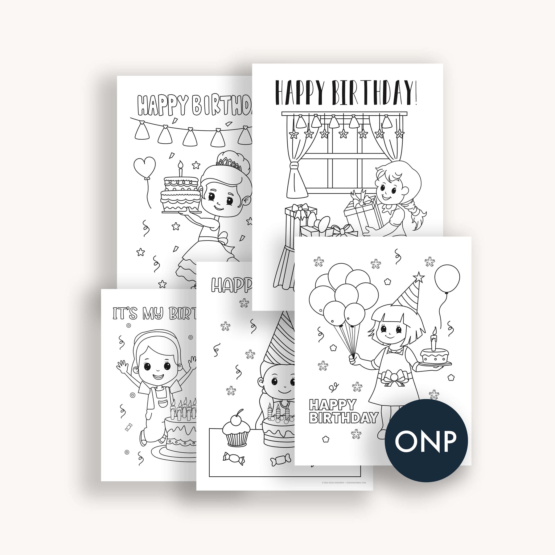 This adorable set of girl's Birthday coloring pages is the perfect activity for girls' Birthday party! Coloring sheets are the perfect way to keep the kids busy. These could also make great party favors or be used for other special occasions.