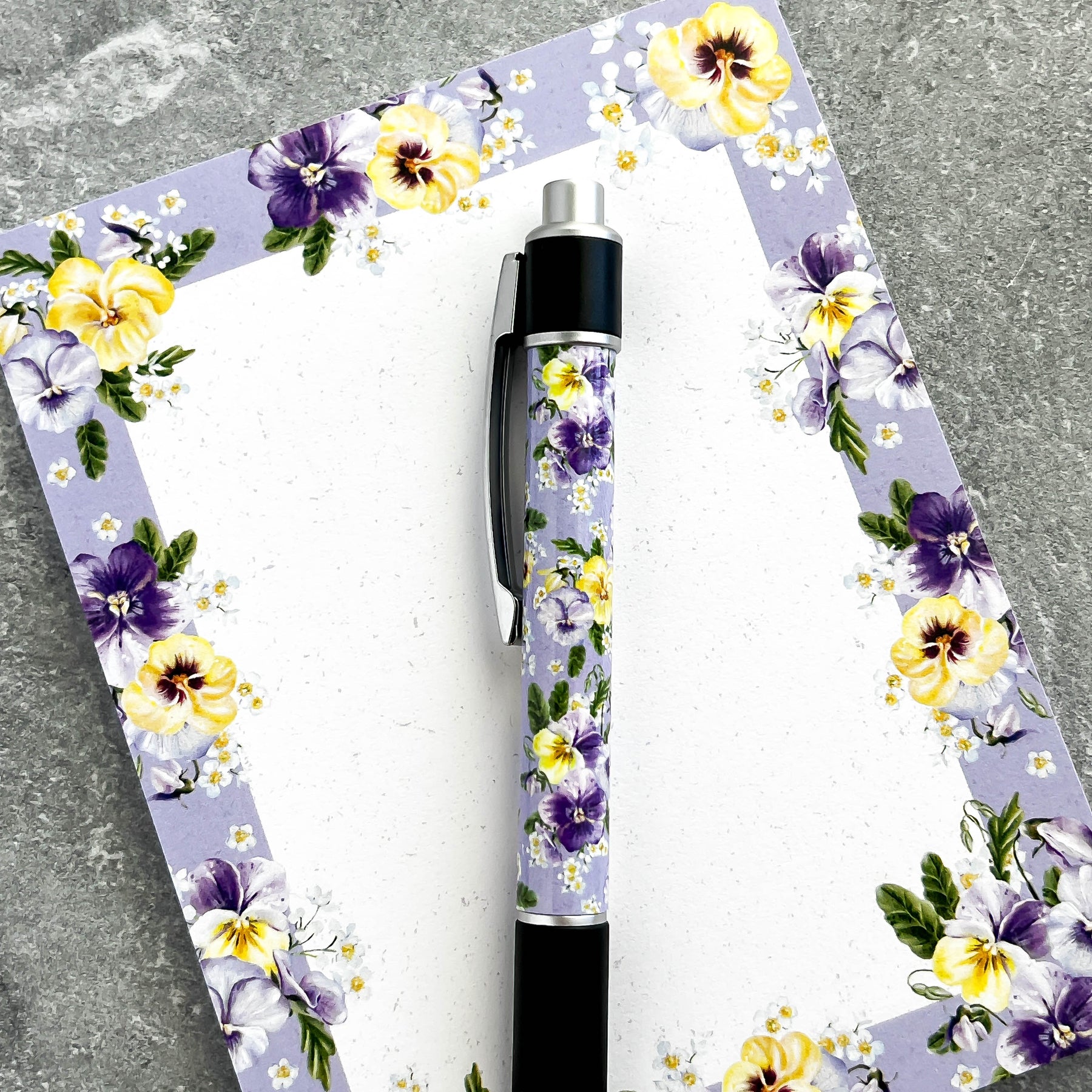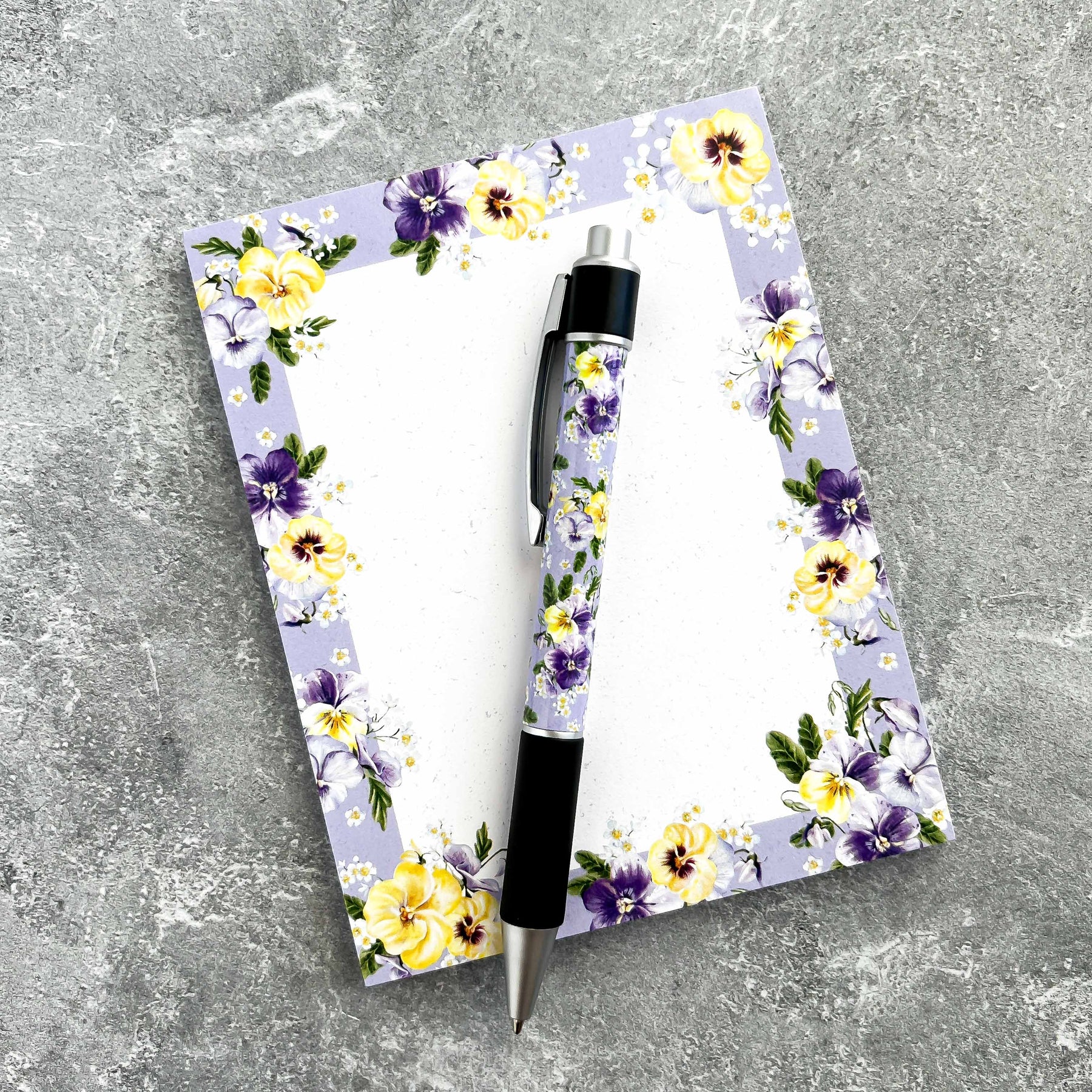 Our beautiful Pansy Posies Ballpoint Pen is the perfect companion for your Olga Nagorna Designs notebooks and notepads and a staple for your desk or purse. This premium ballpoint pen features Olga Nagorna Designs artwork that wraps entirely around the pen.