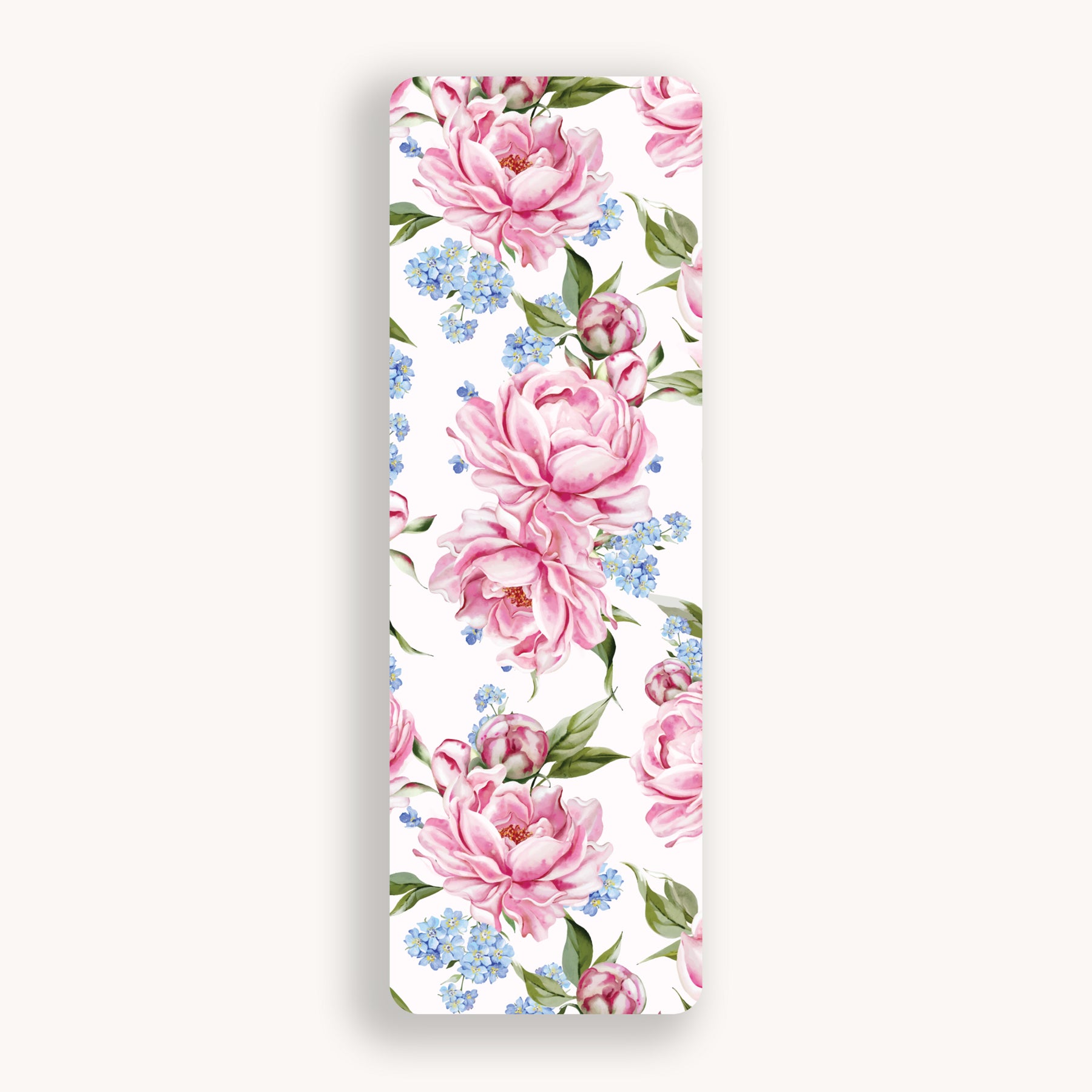 Our Pink Peony and Forget-Me-Not florals bookmark features an original artwork and is printed in full color front and back with coordinating designs; a great accessory to add between the pages of your favorite book.