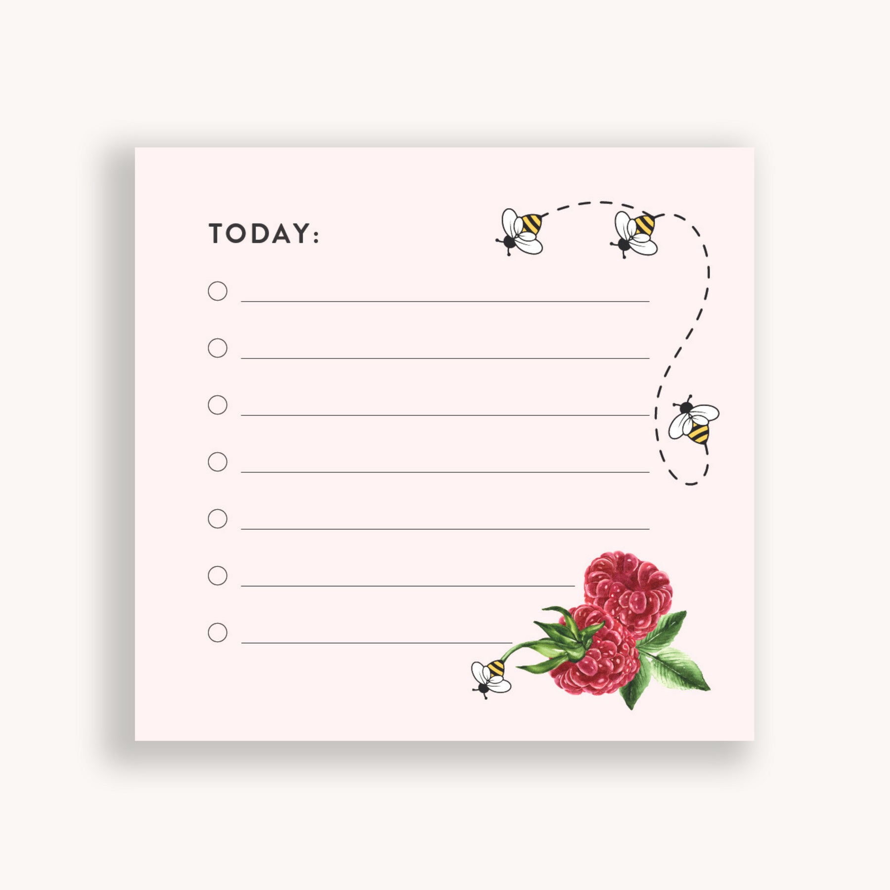 These raspberries and bees sticky notes are perfect for daily notes, making to-dos, journaling and scrapbooking. They pair well with our Olga Nagorna Designs notebooks and other stationery products.