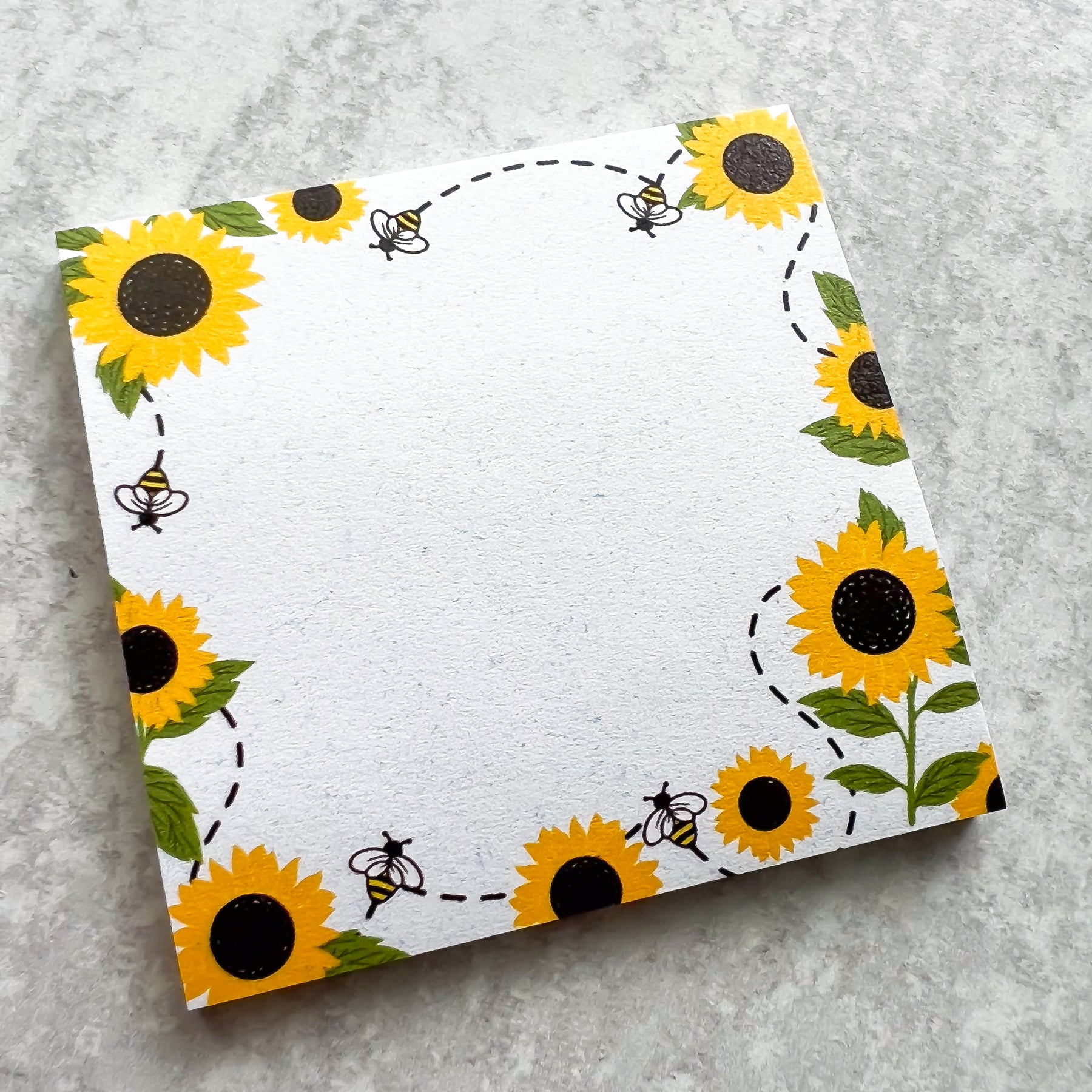The sunflowers and bees sticky notes are perfect for daily notes, making to-dos, journaling and scrapbooking. They pair well with our Olga Nagorna Designs notebooks and other stationery products.