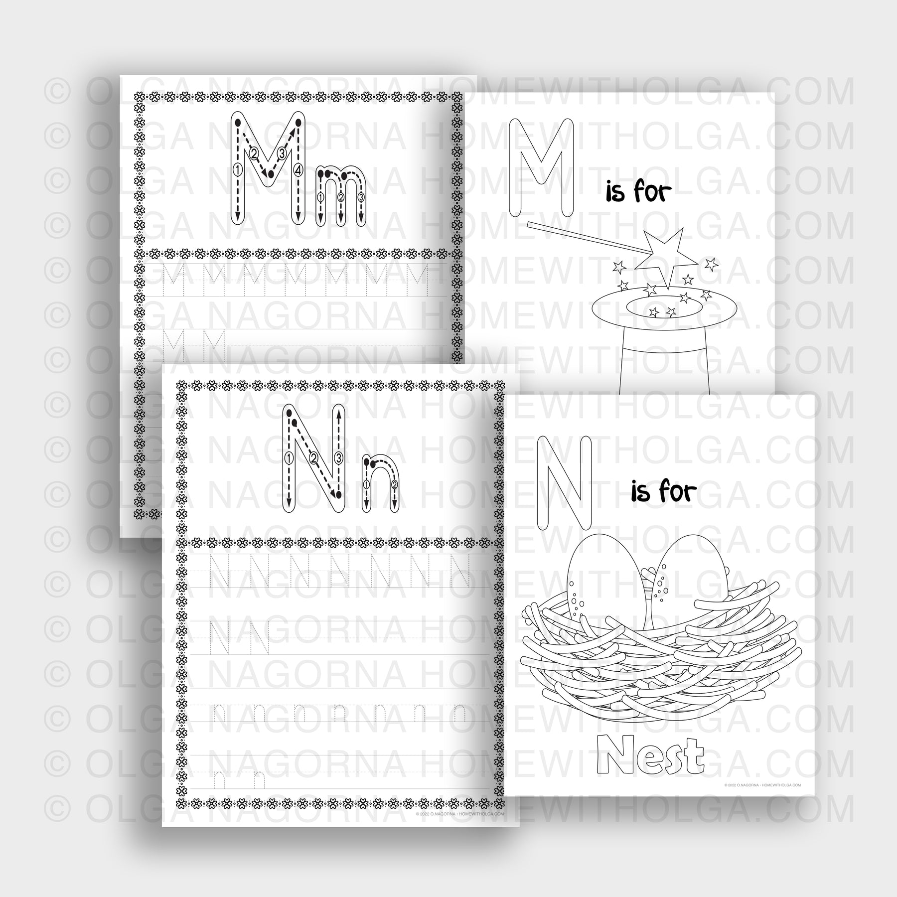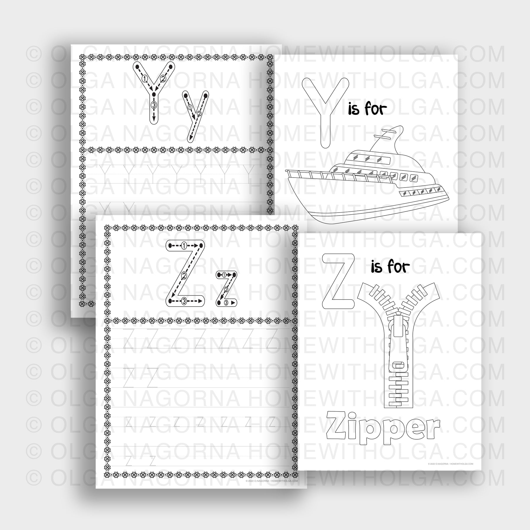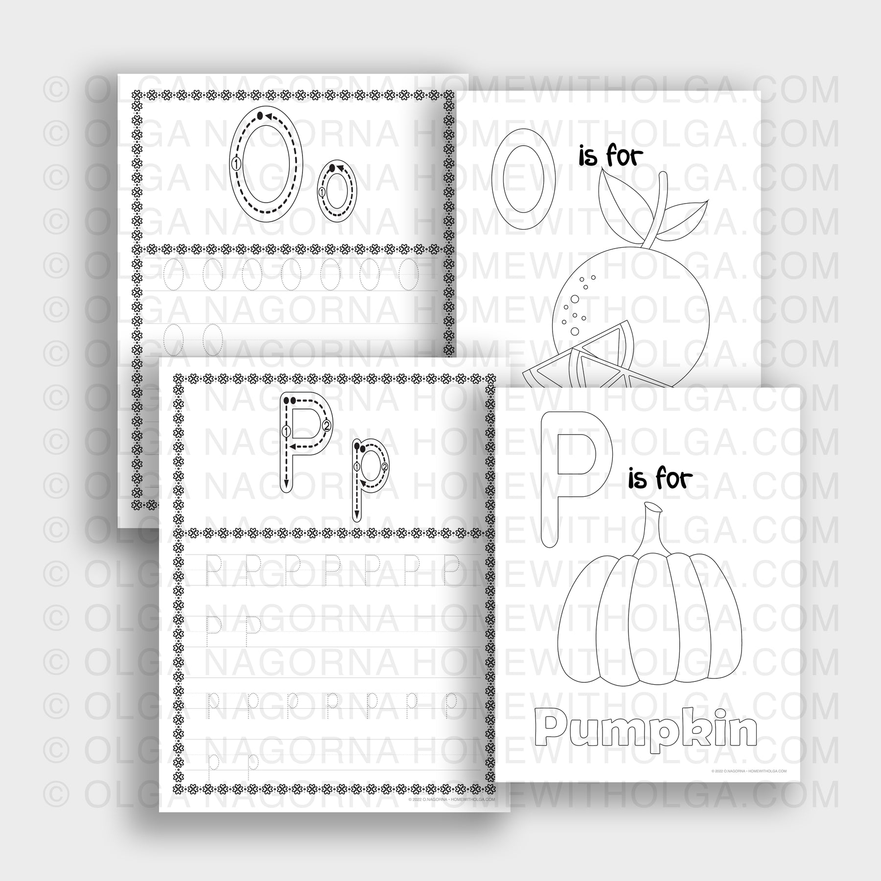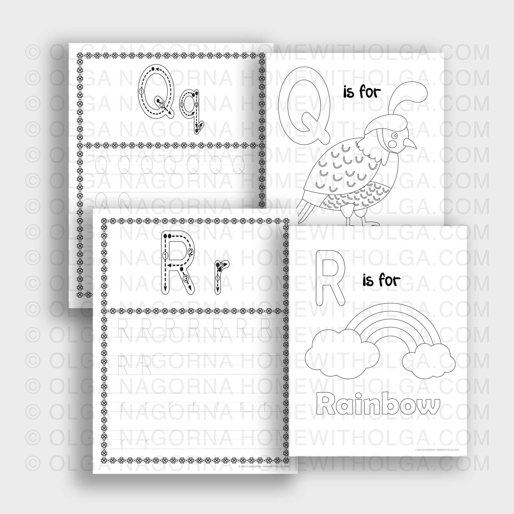 A set of full English alphabet tracing. Each letter comes with a coloring page that goes with each letter.
