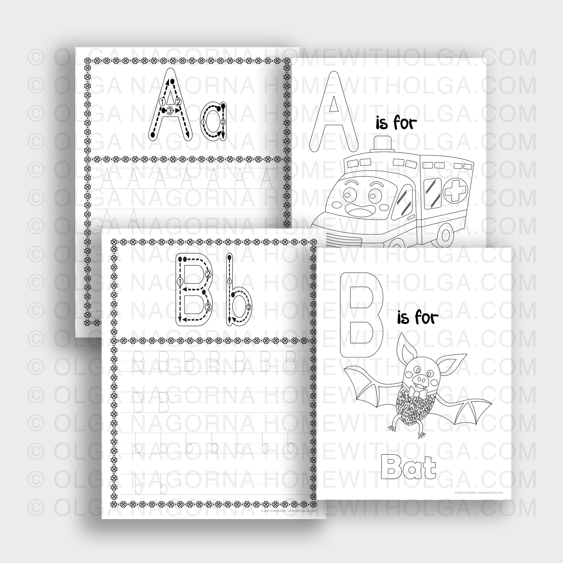 • 52 pages (A-Z + 26 coloring pages) in black and white.
